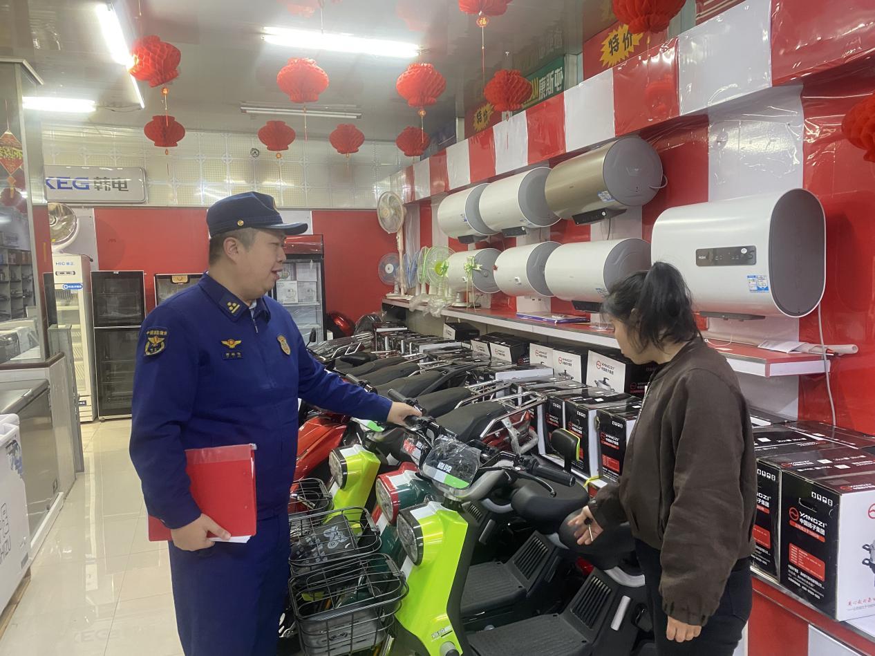 塔河縣消防救援大隊執(zhí)法人員深入電動車銷售門店開展安全檢查(孫珍珍 攝)